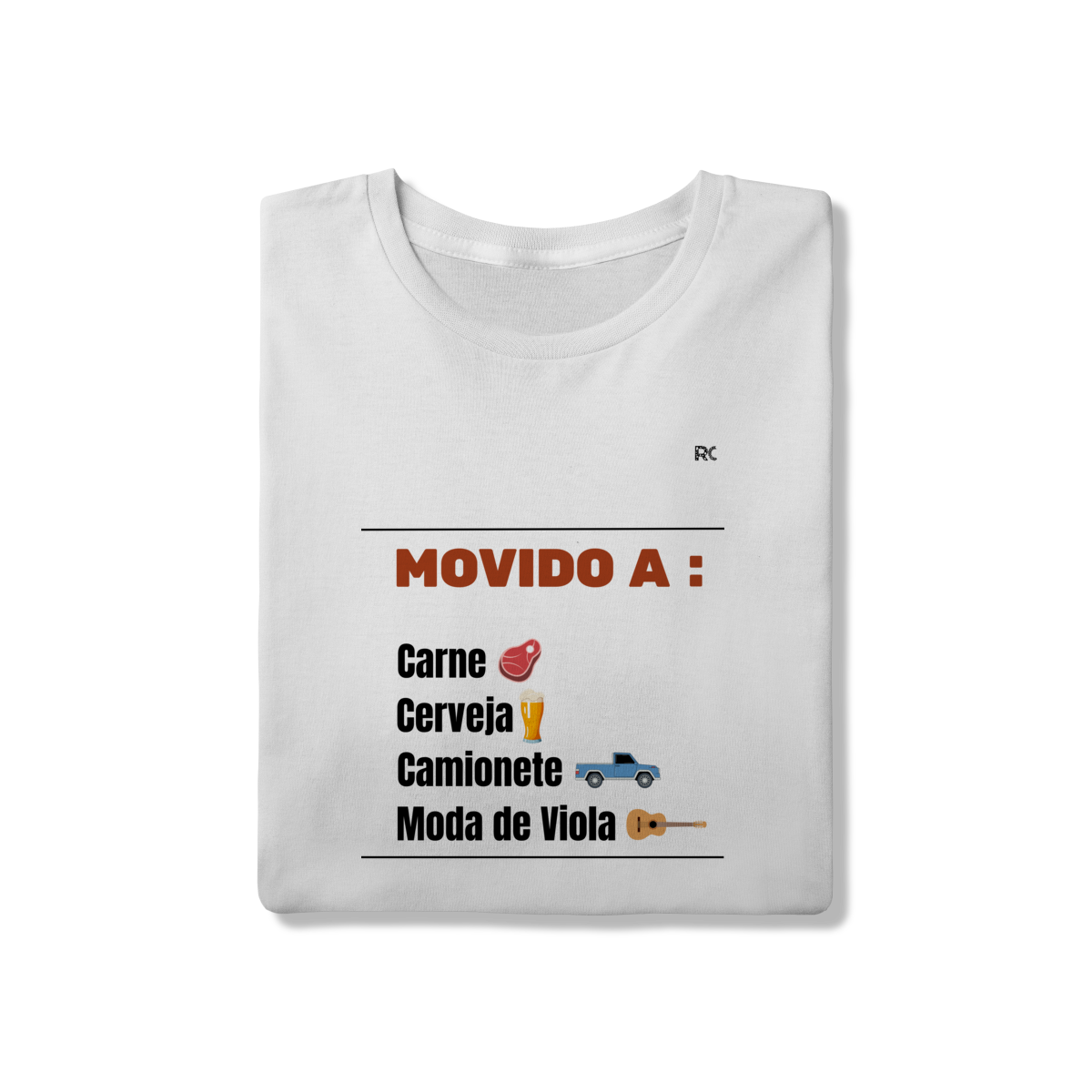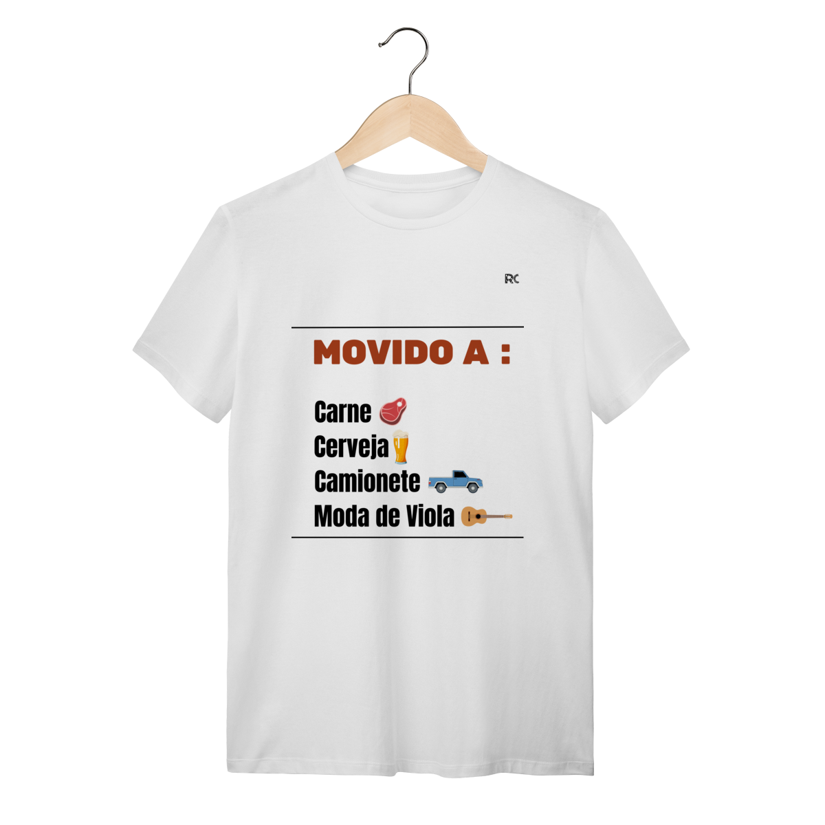 A Camiseta Quality Branca – Movido a carne, cerveja, caminhonete e moda de viola representa o combustível de quem vive o bom da vida simples.