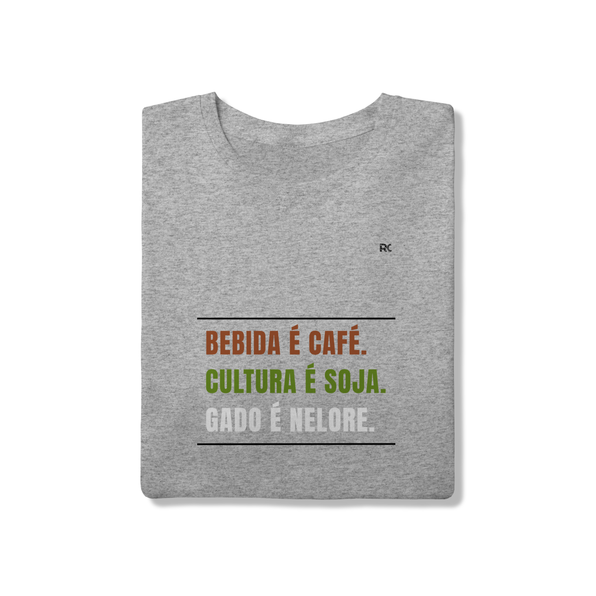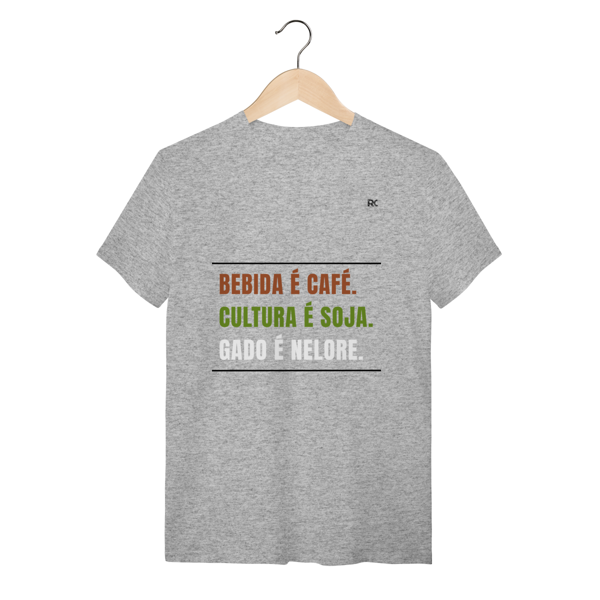 Camiseta Quality Cinza – Bebida é café, cultura é soja e gado é nelore demonstra o apreço as três grandes atividades agrícolas do país, conheça nossa coleção Modo Agro On