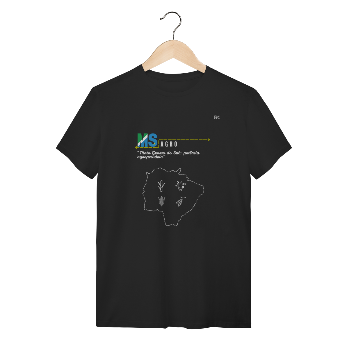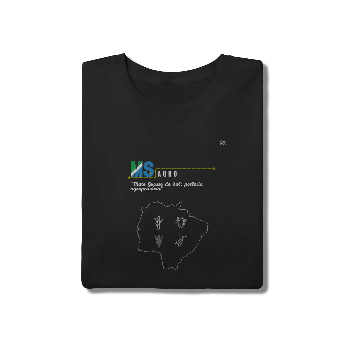 A Camiseta Quality Preta – Mato Grosso do Sul Agro celebra a força da pecuária e da agricultura sul-mato-grossense que move o país.